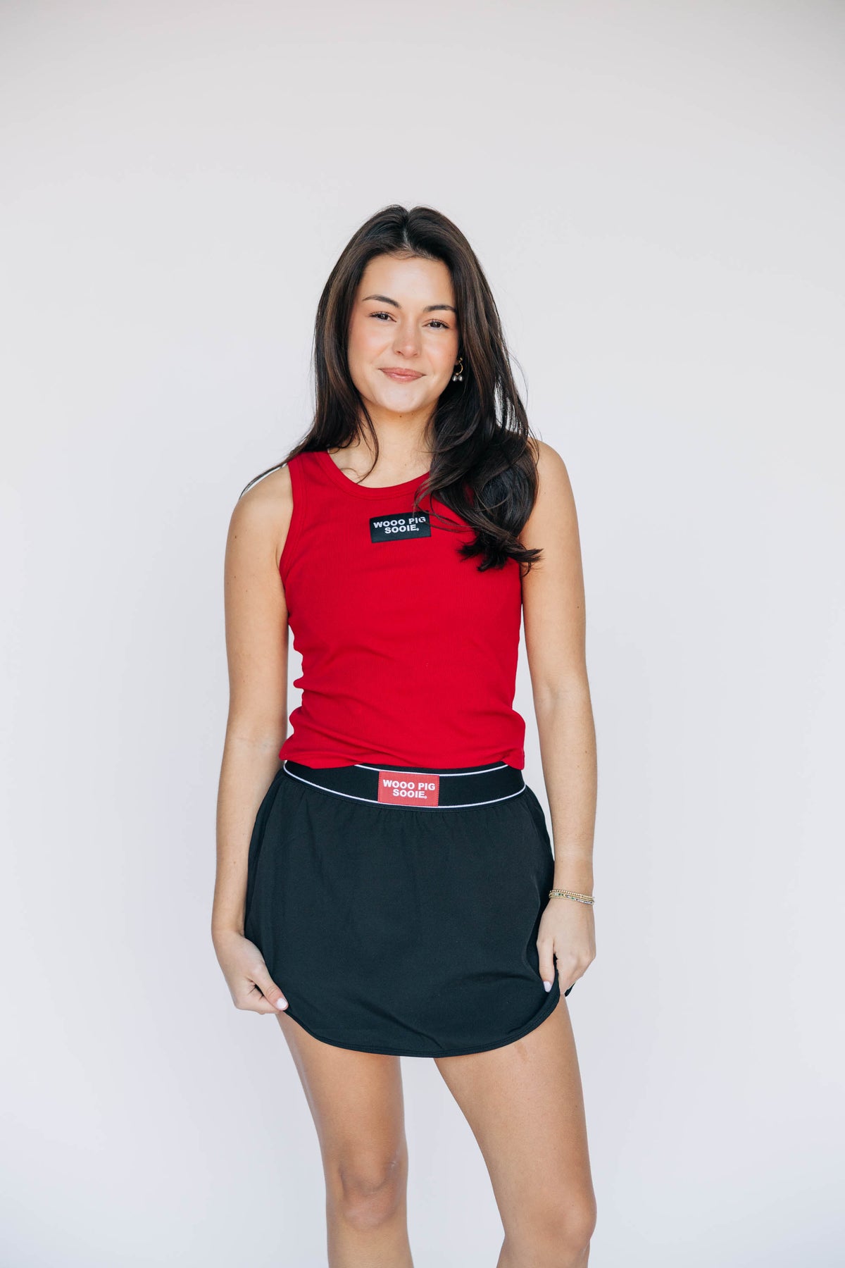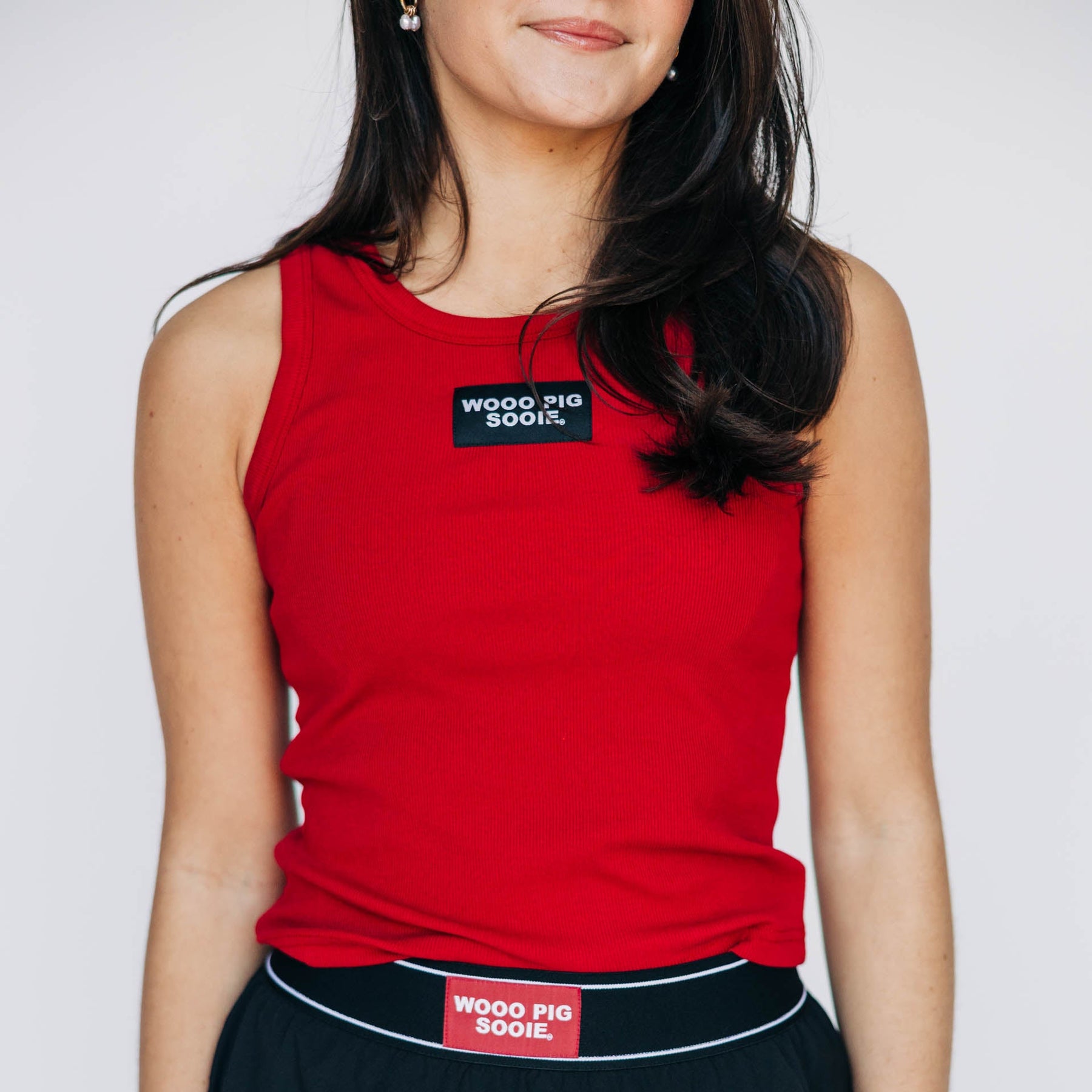 The Alli Ribbed Tank Woo Pig Sooie Woven Label | Crimson