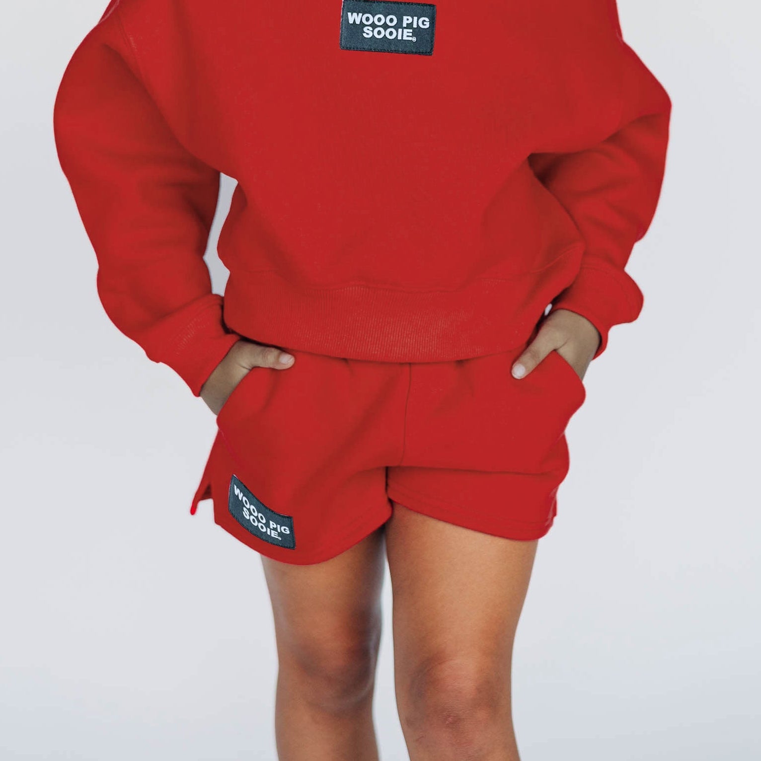 Meet the Becca shorts, the softest and most flattering midweight sweatshorts!! The crimson color is STUNNING! Shorts feature a cinched waistband & fit true to size. The Becca shorts feature a woven label on the left corner.