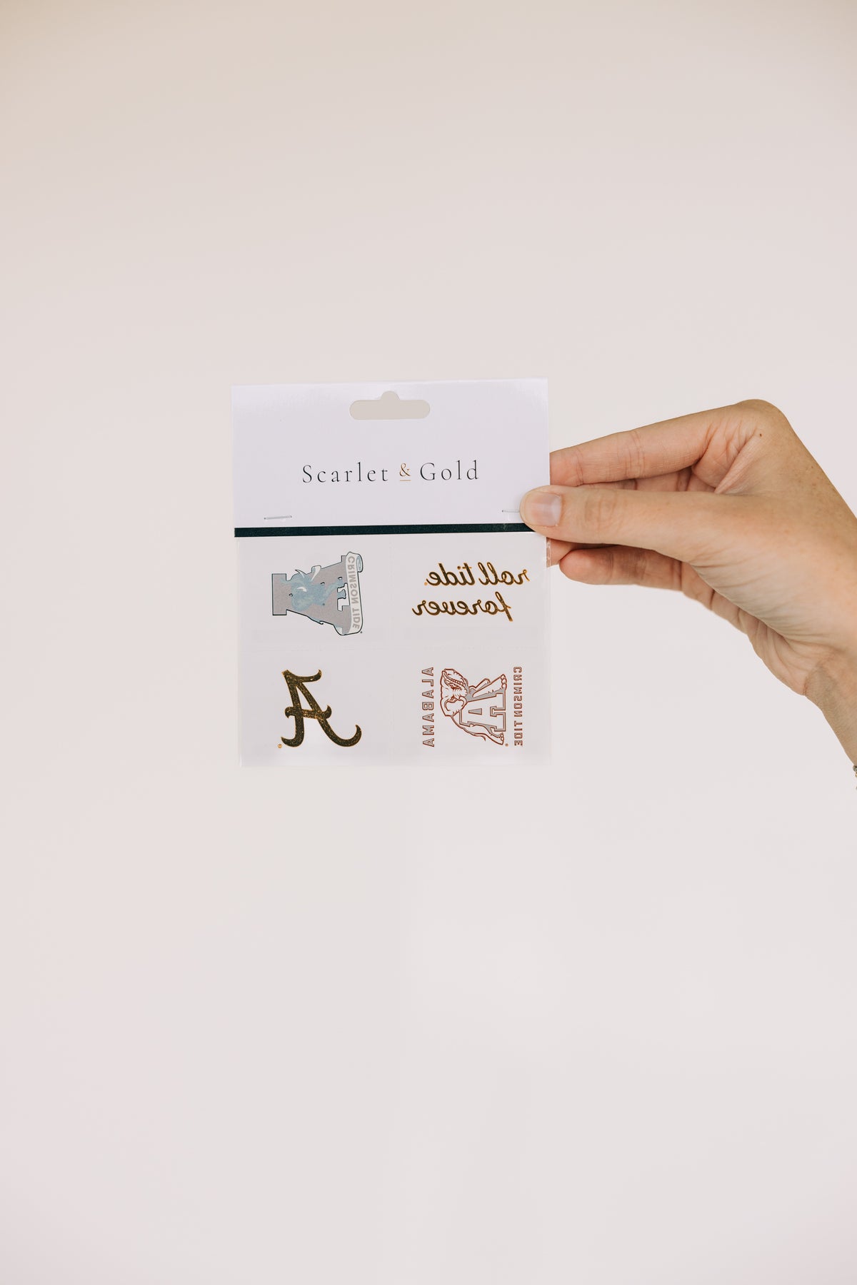 Get game-day ready with our Free Bama Face Tattoo Pack! Perfect for the Iron Bowl, these spirited tattoos let you show you rep AU in style! Each pack includes a mix of Alabama designs! Note: Designs will vary — every pack’s a surprise!