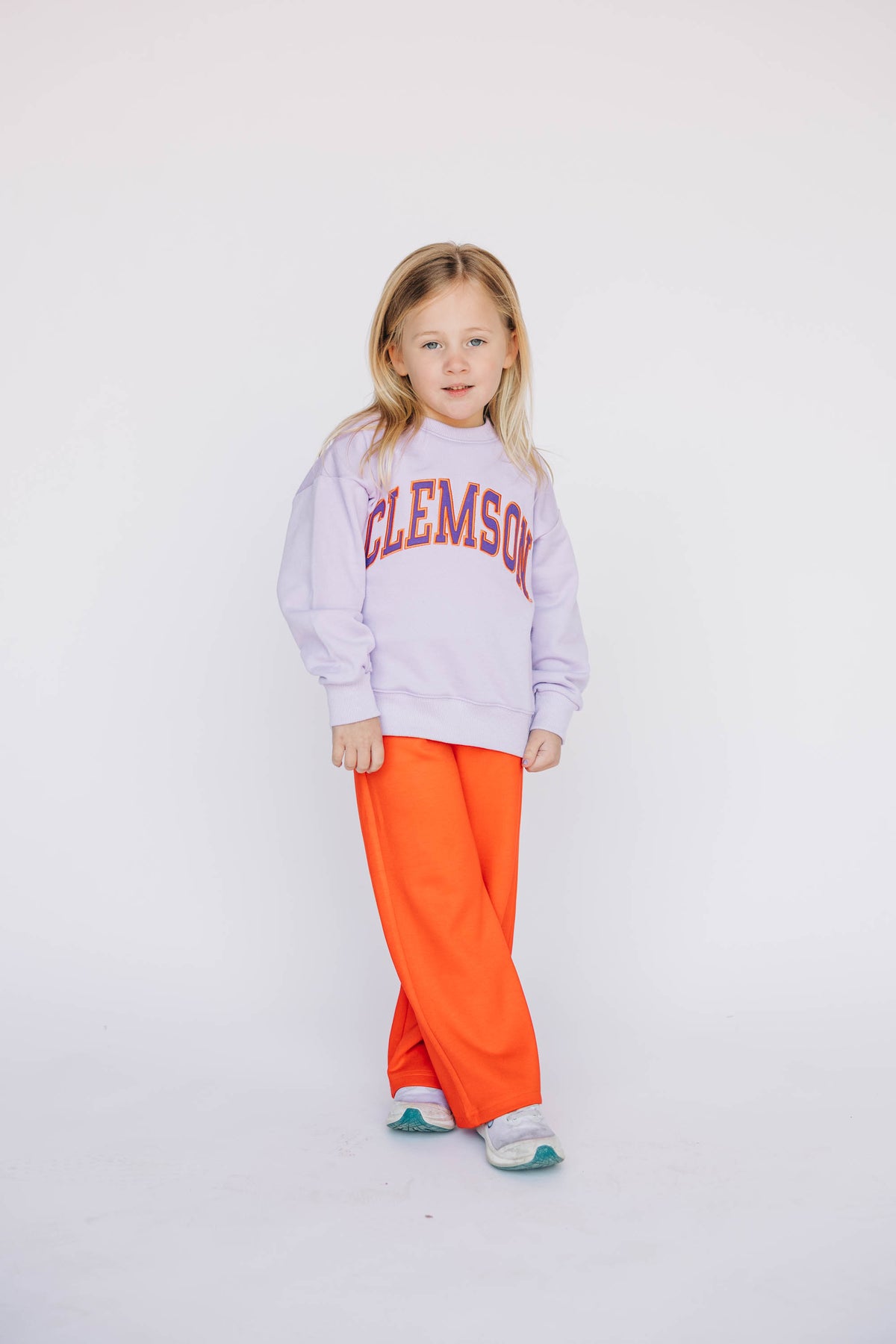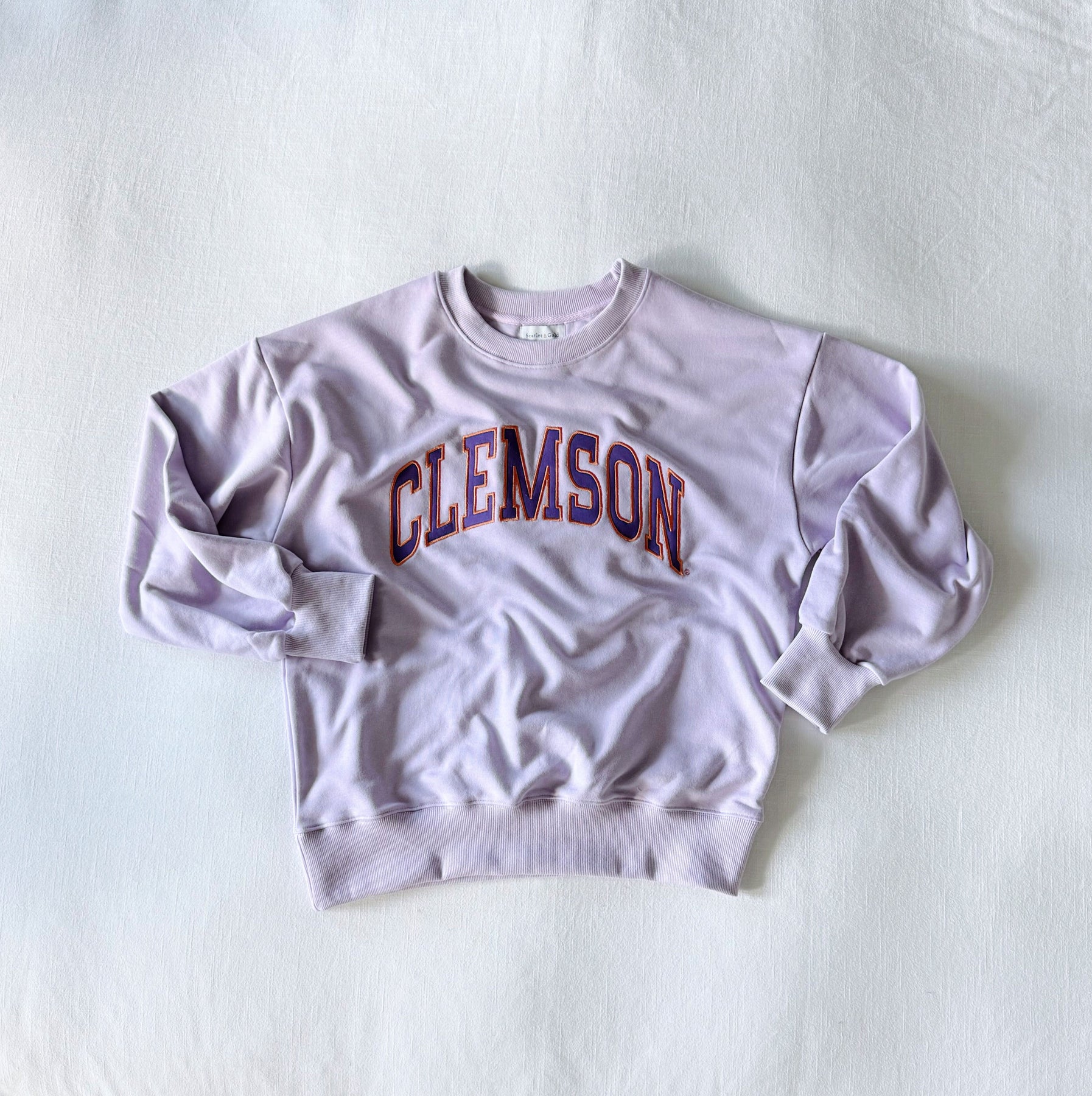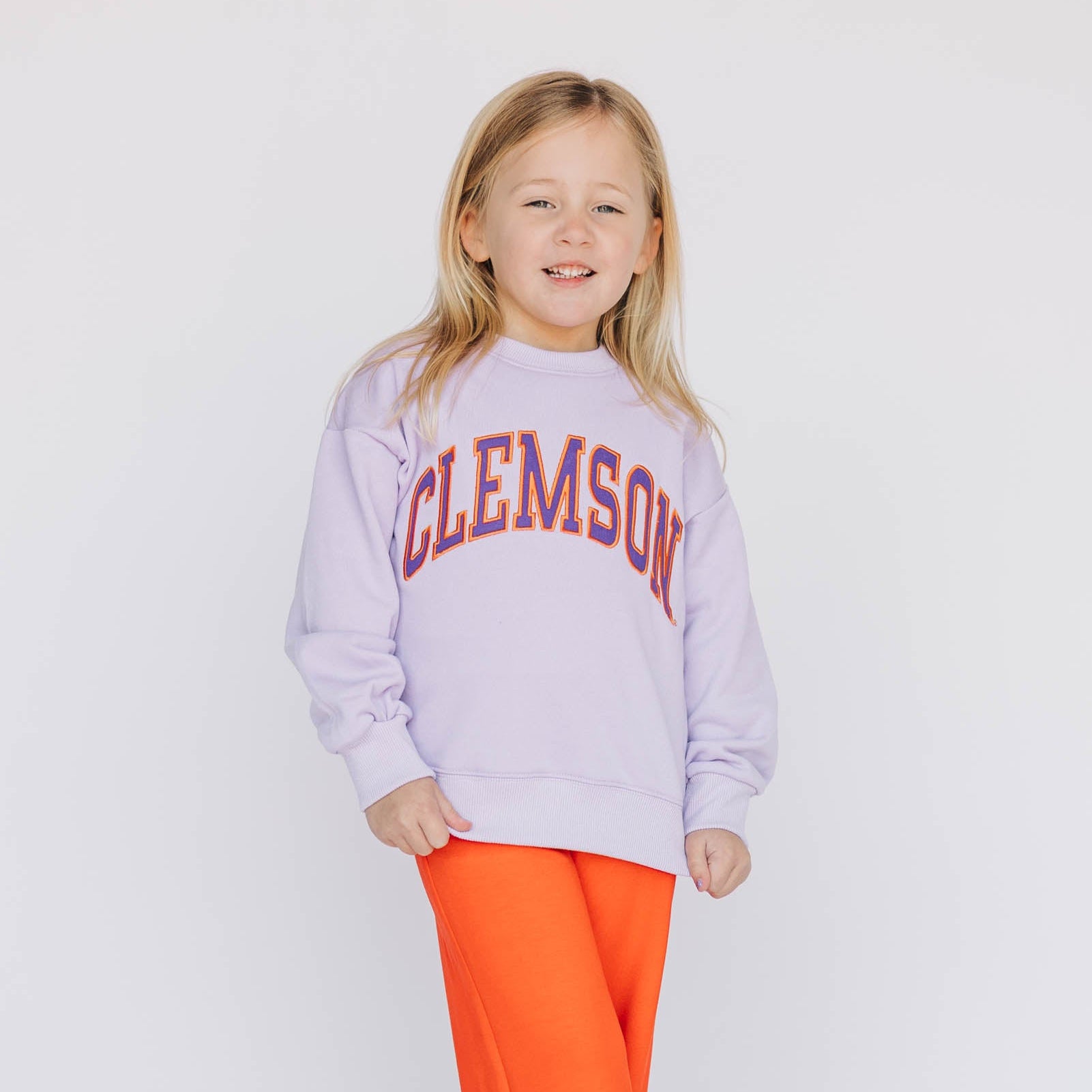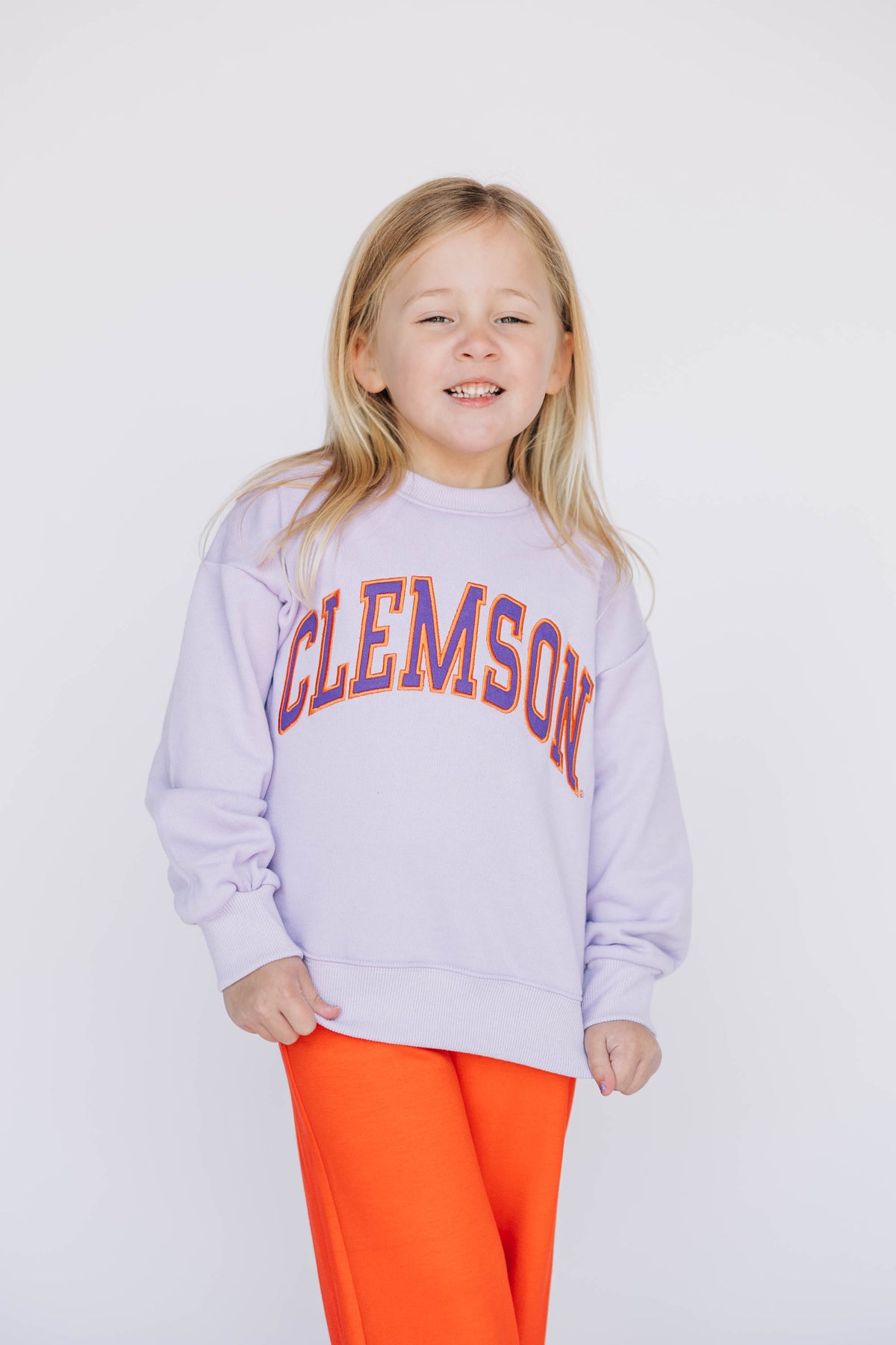The Mallory Crewneck Clemson Applique | Youth Lavender