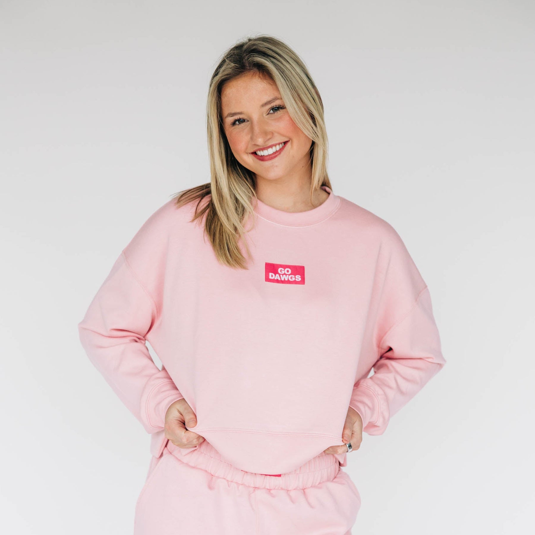 The Ava Airy Crewneck Go Dawgs Woven Label | Light Pink