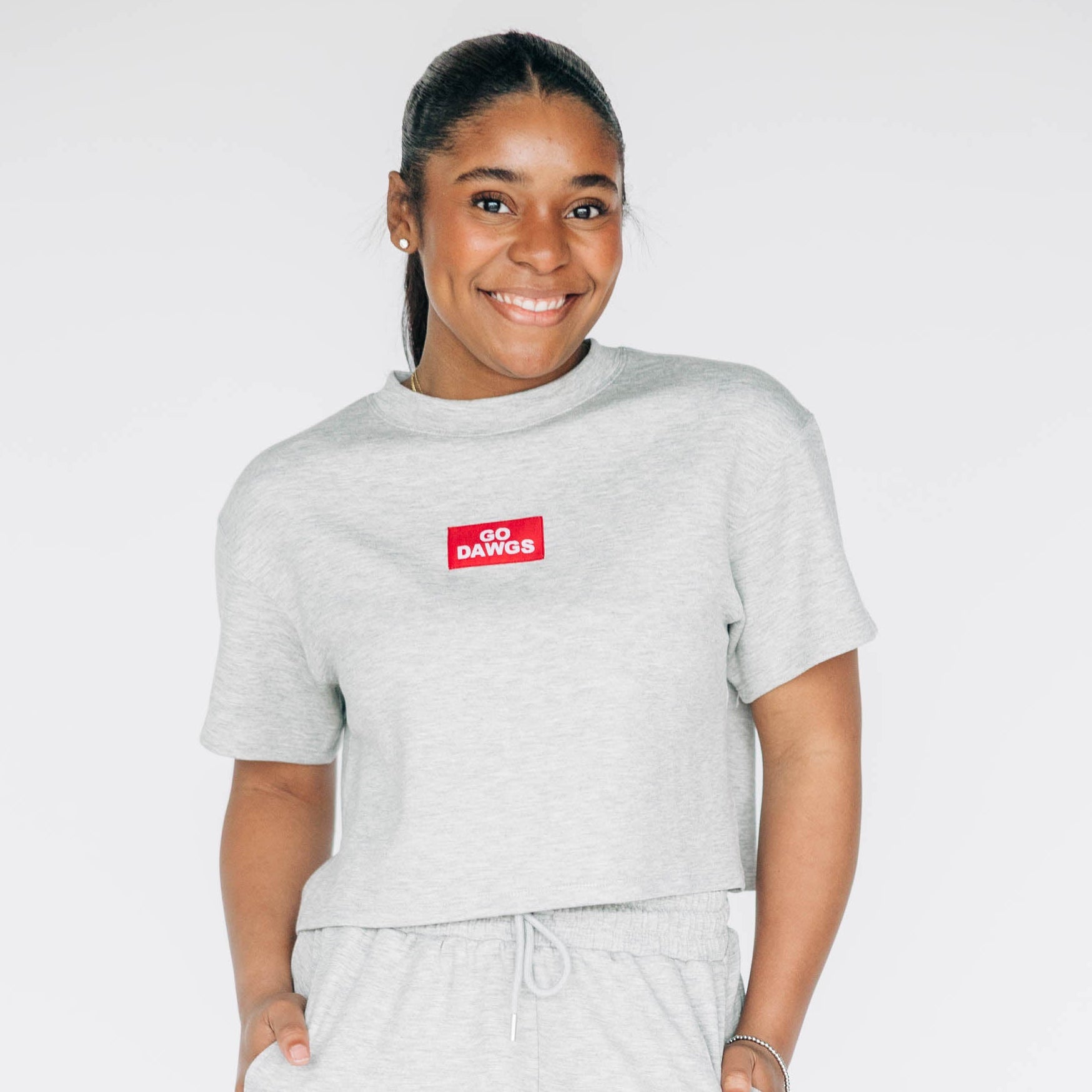 The Kristen Airy Tee Go Dawgs Woven Label | Heather Grey