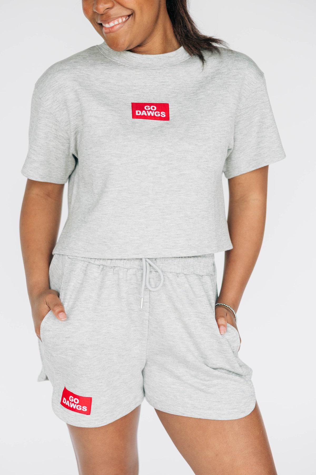 The Kristen Lounge Shorts Go Dawgs Woven Label | Heather Grey