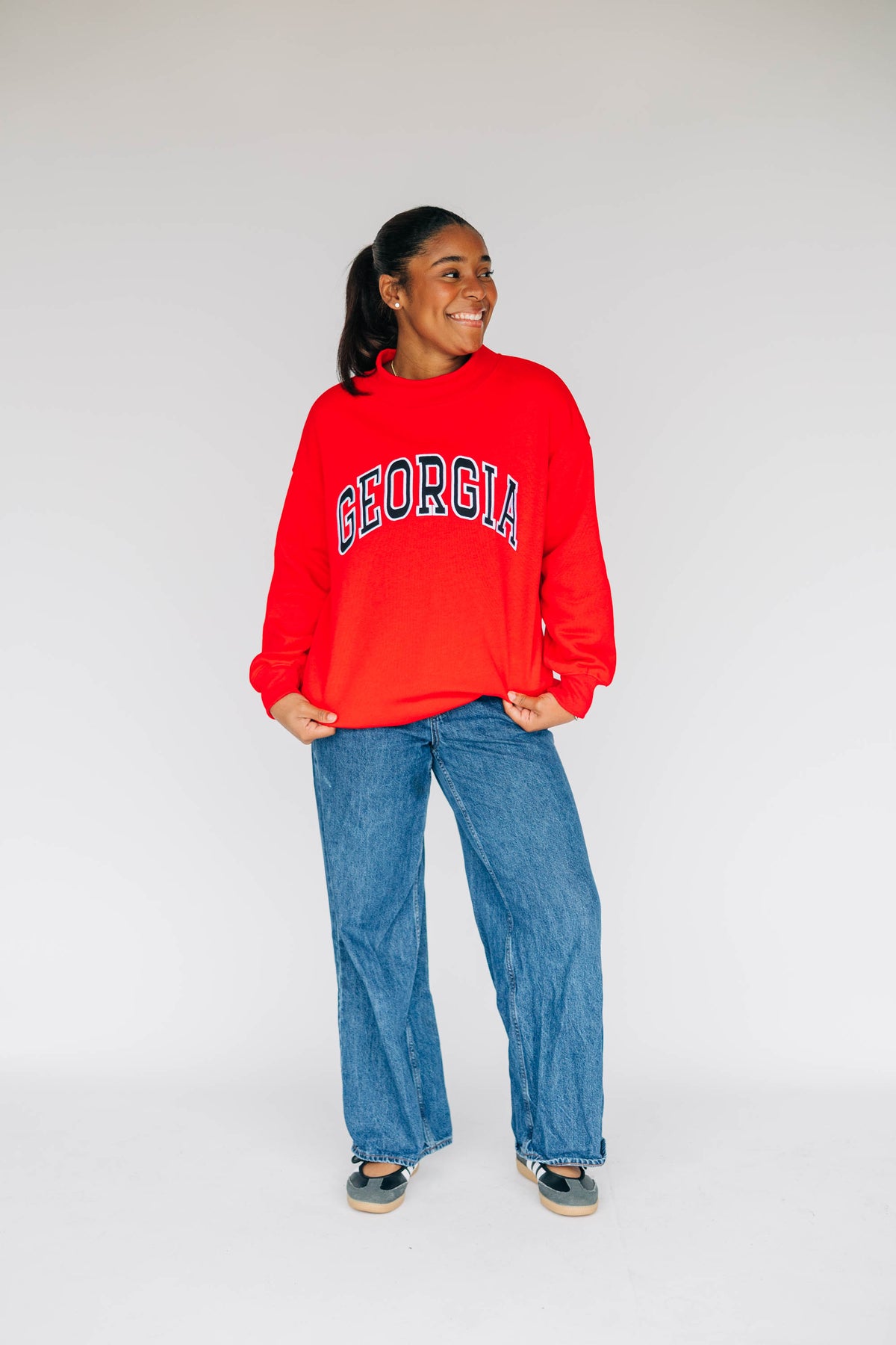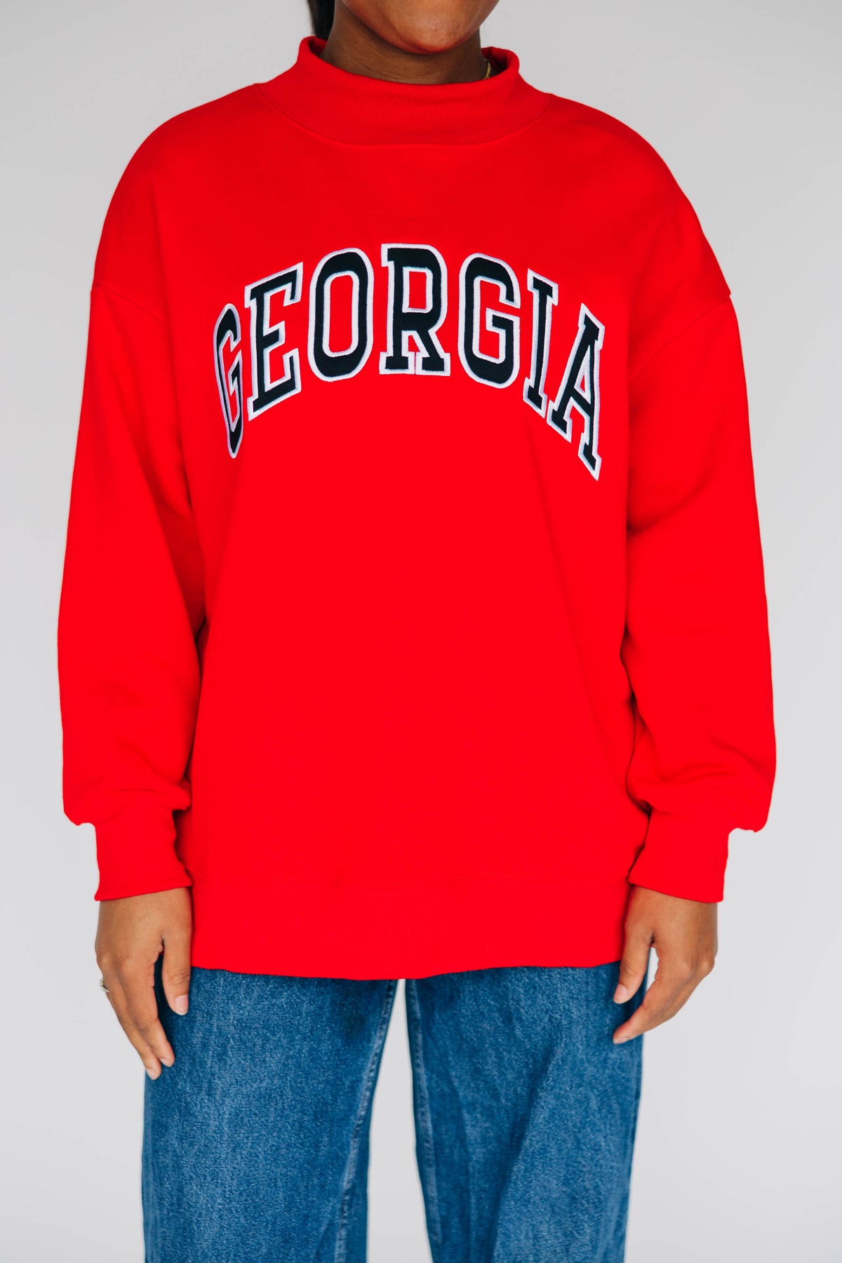 The Madi Classic Mockneck Georgia Applique | Bright Red