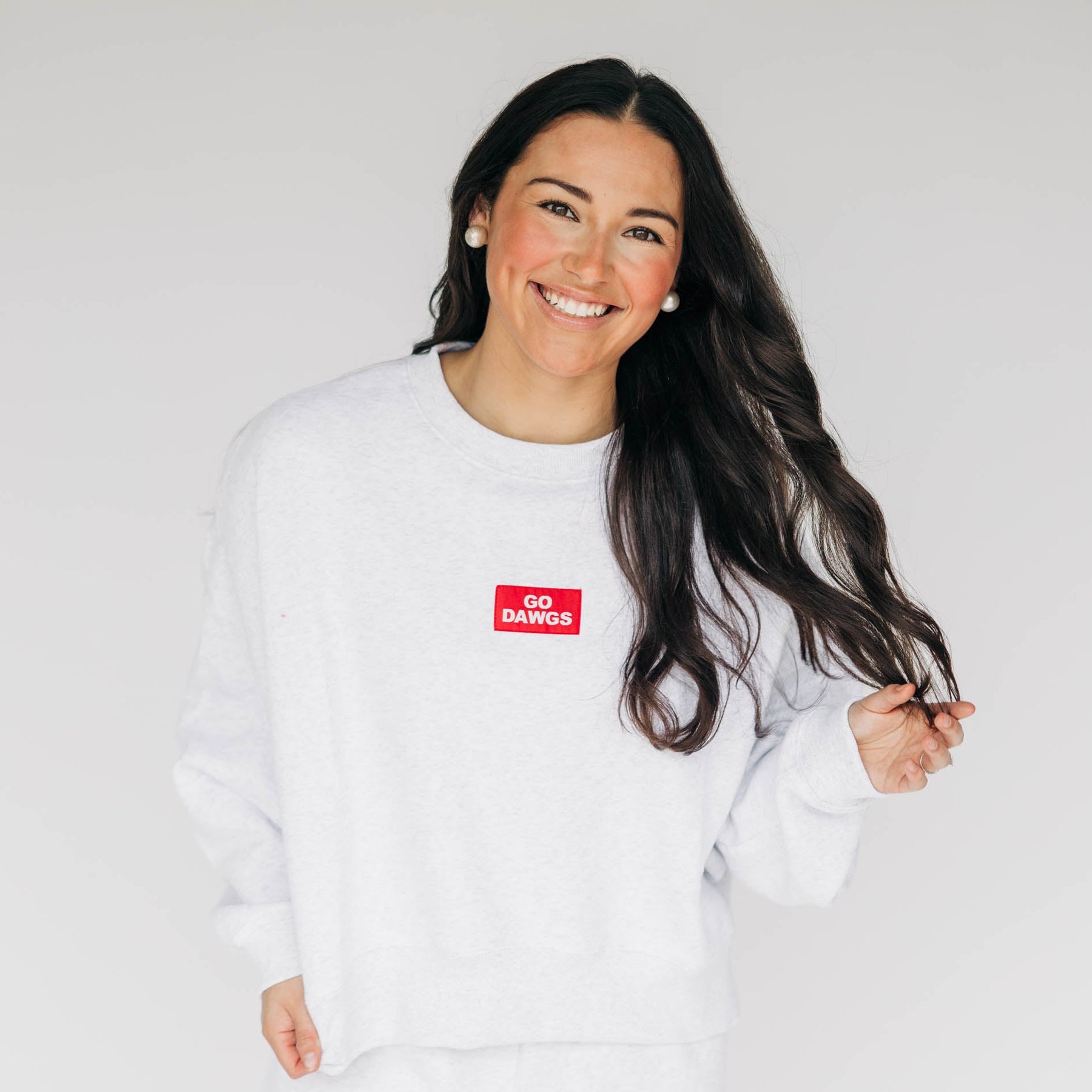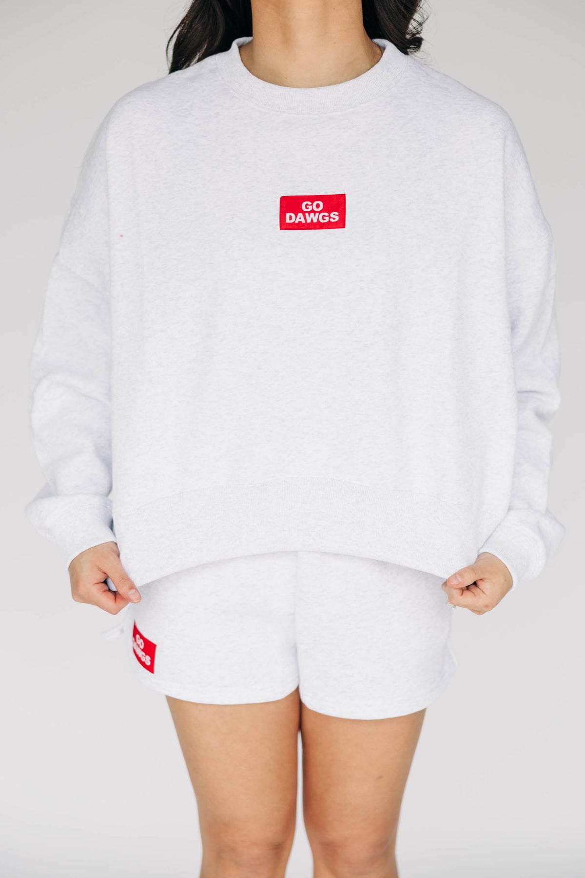 The Becca Boxy Crewneck Go Dawgs Woven Label | Ash