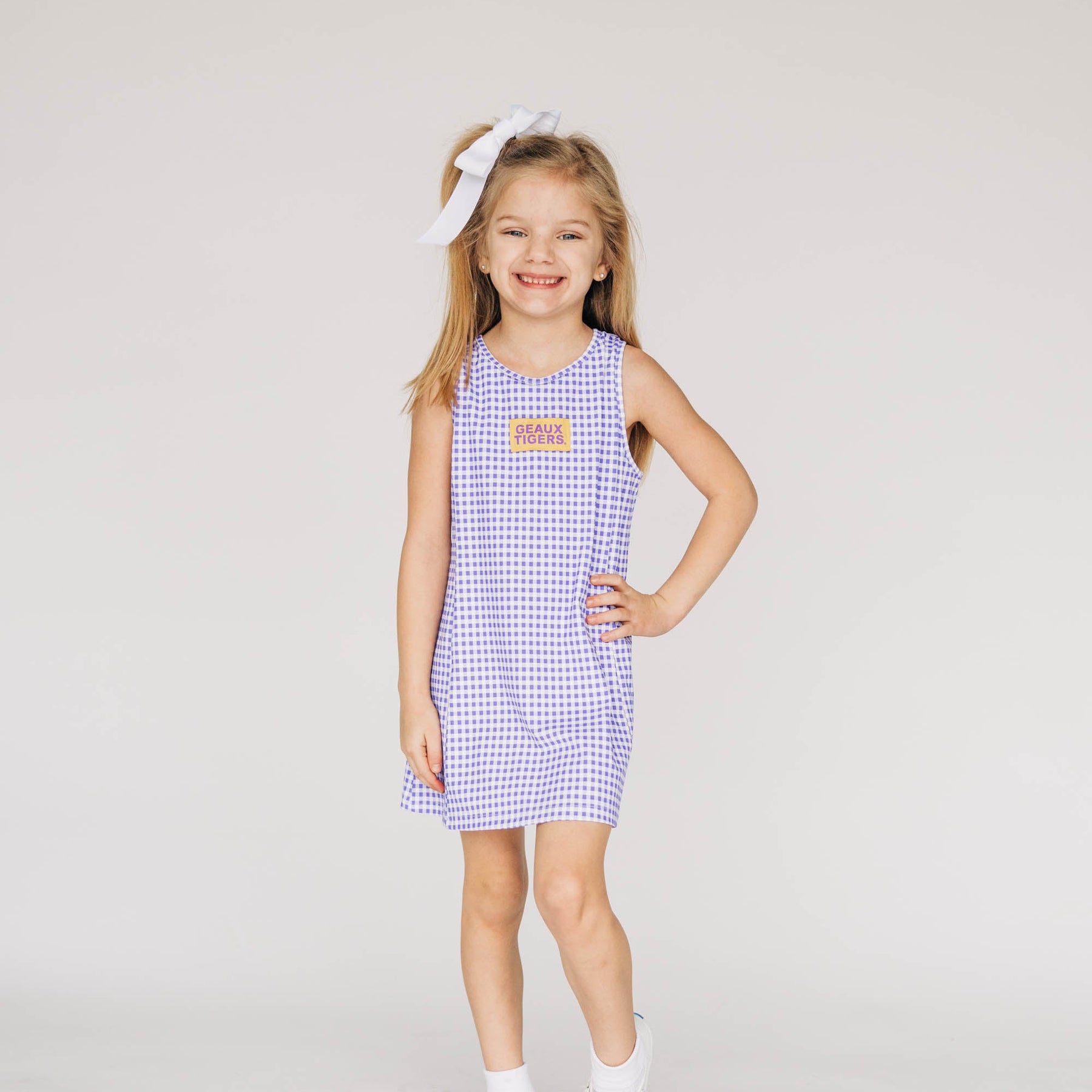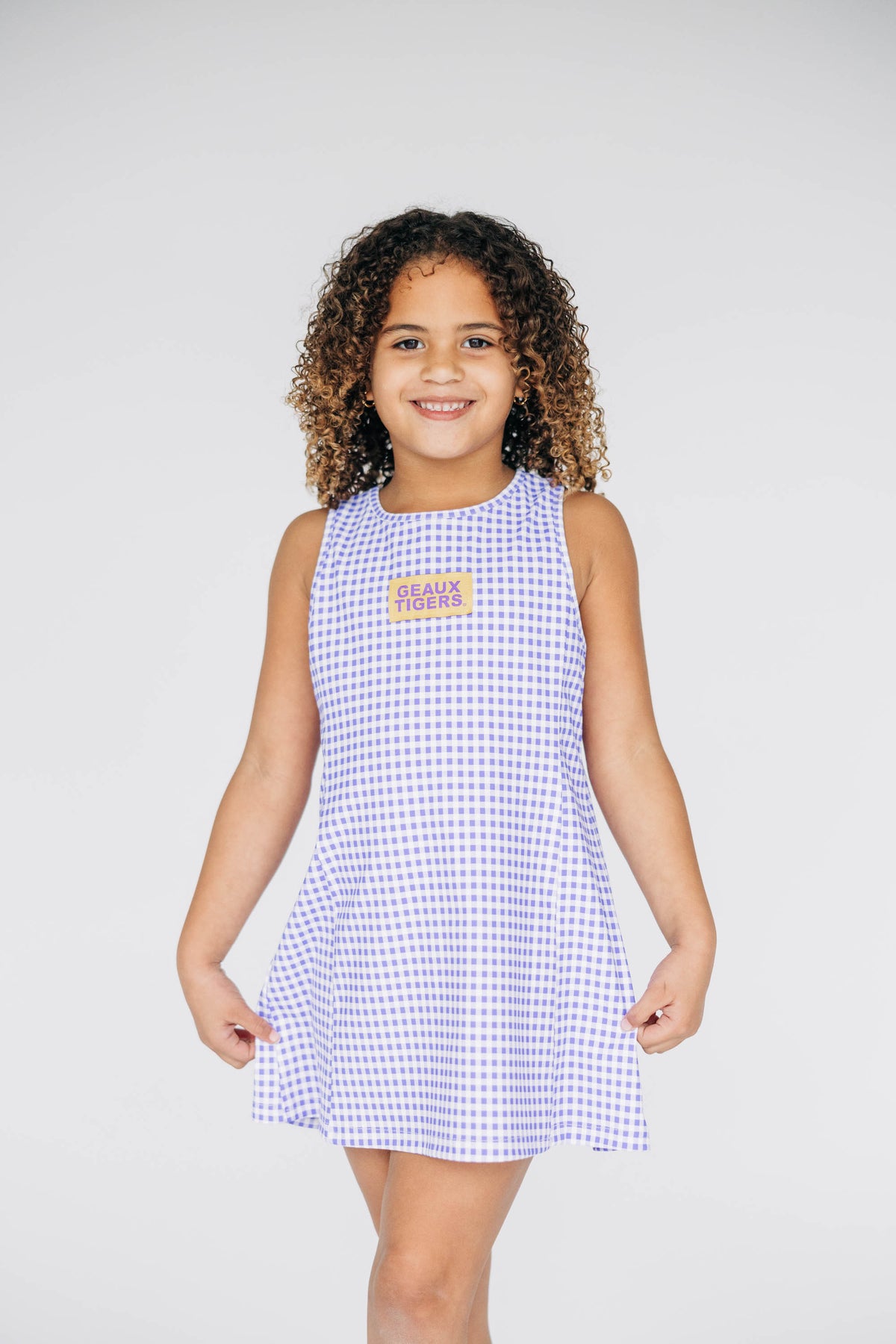 The Grace Gingham Dress Geaux Tigers Woven Label | Youth Purple Gingham
