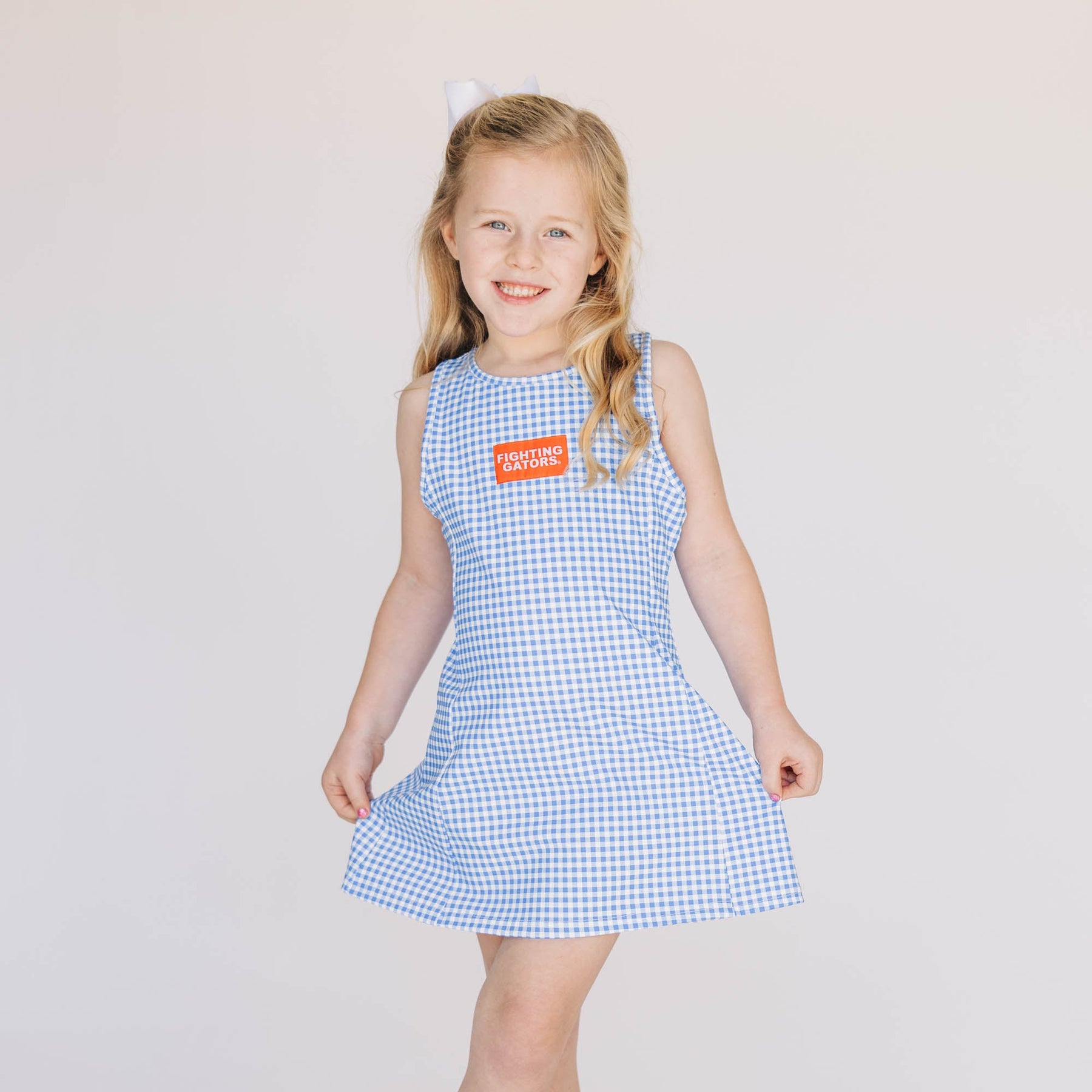 The Grace Gingham Dress Fighting Gators Woven Label | Youth Royal Gingham