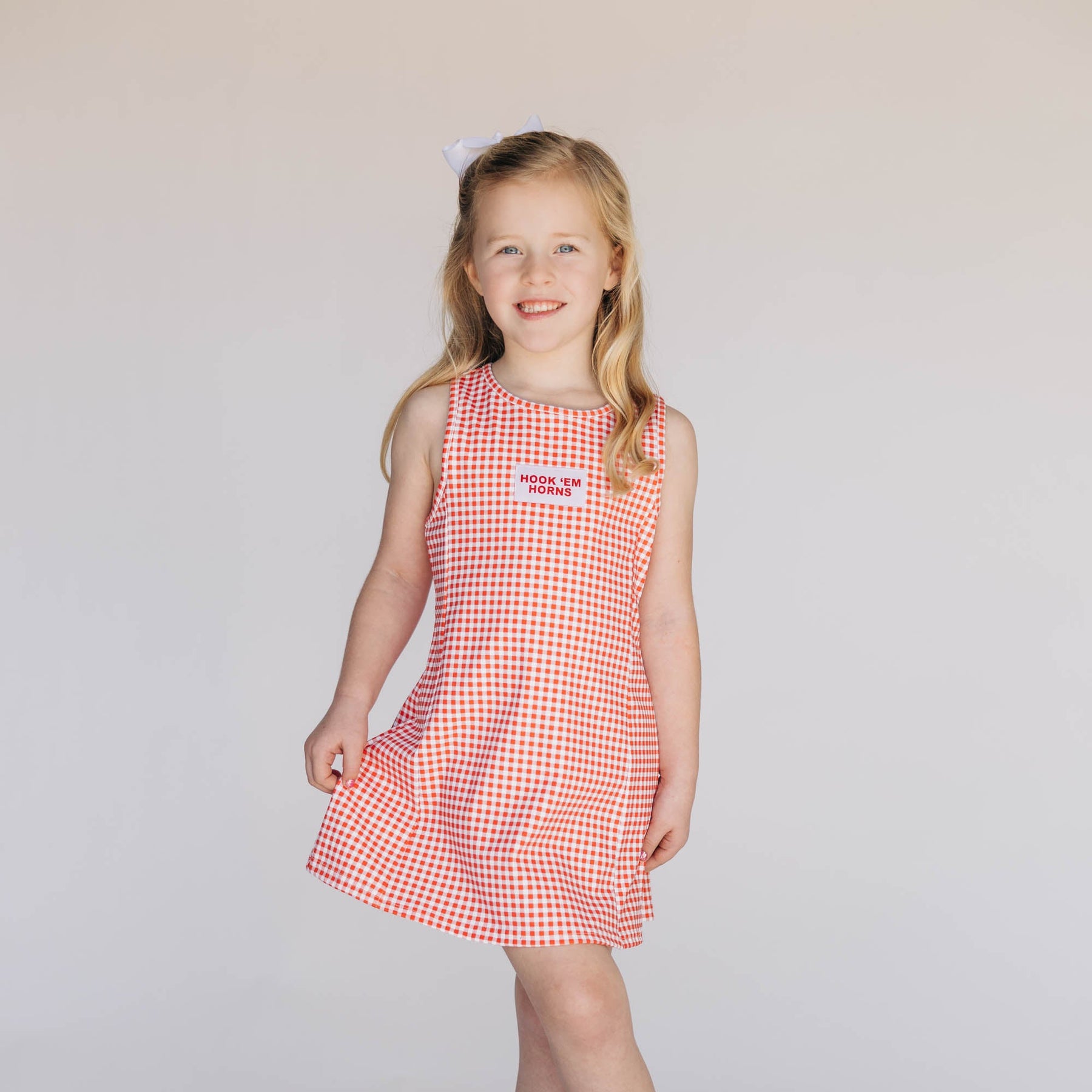The Grace Gingham Dress Hook 'Em Horns Woven Label | Youth Burnt Orange Gingham