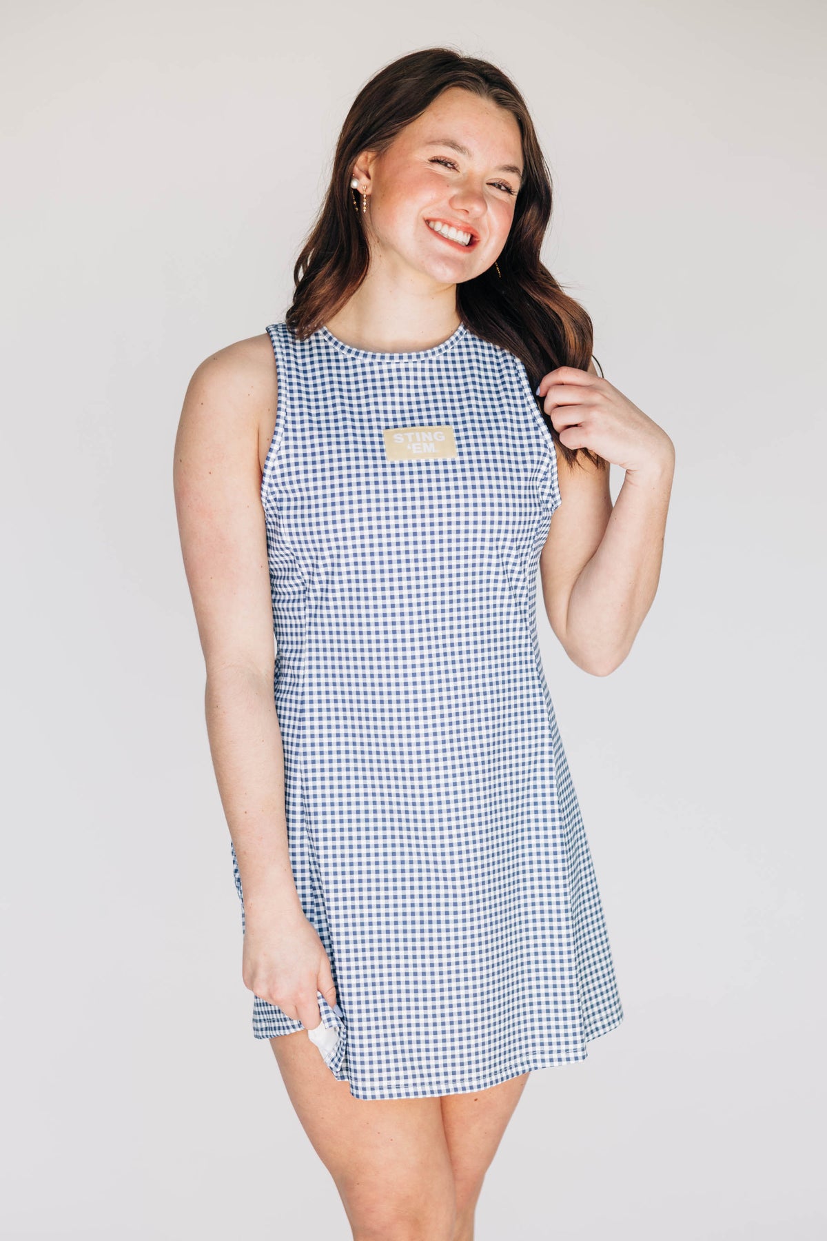 Meet your new game day uniform — cute, sporty, and made for real life. The Grace Gingham Dress is perfect for a morning pickleball match, running around with the kids, or cheering on your team. It features a high neckline, an A-line silhouette, and a sleeveless cut that keeps things breezy and flattering. Seaming along the sides adds subtle structure, while a zipper at the upper back makes it easy to slip on and off.