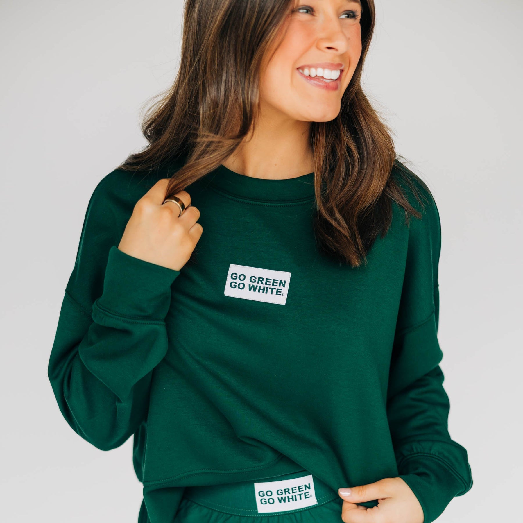 The Ava Airy Crewneck Go Green Go White Woven Label | Dark Green