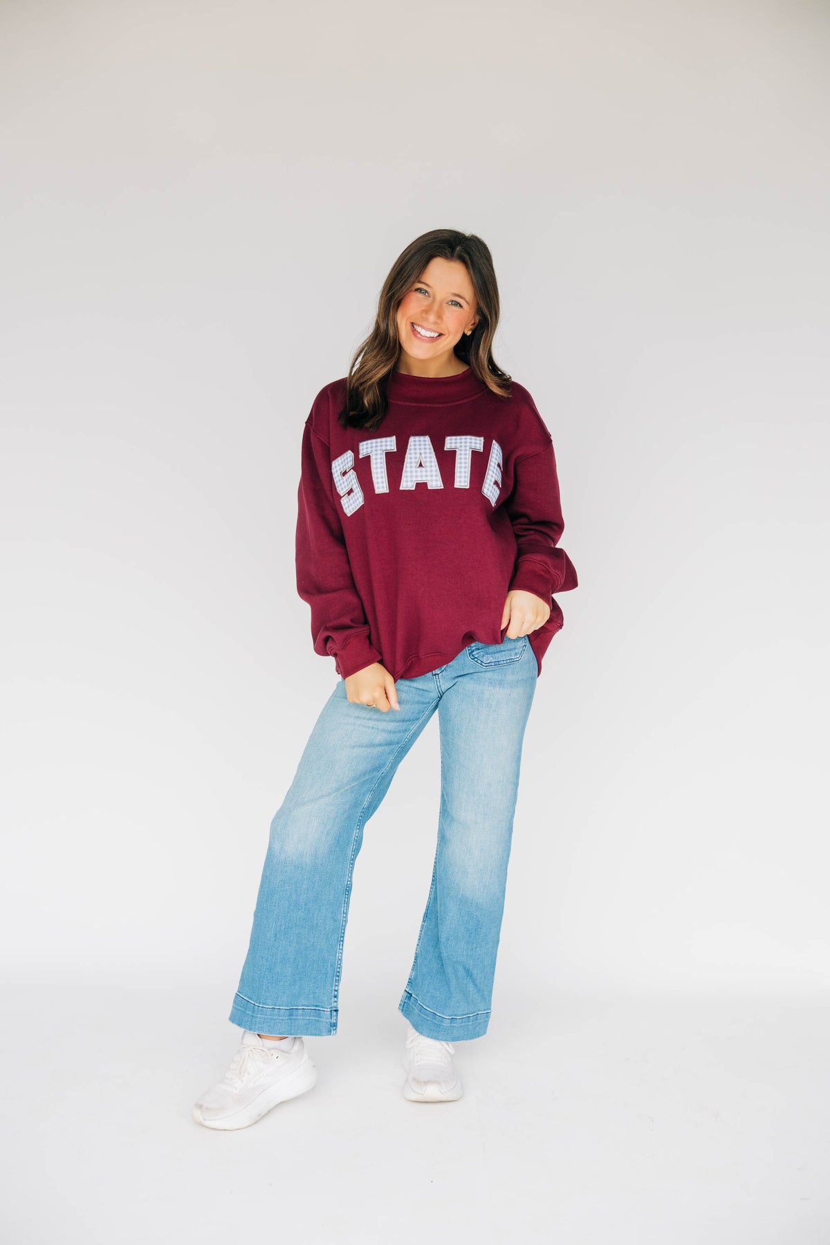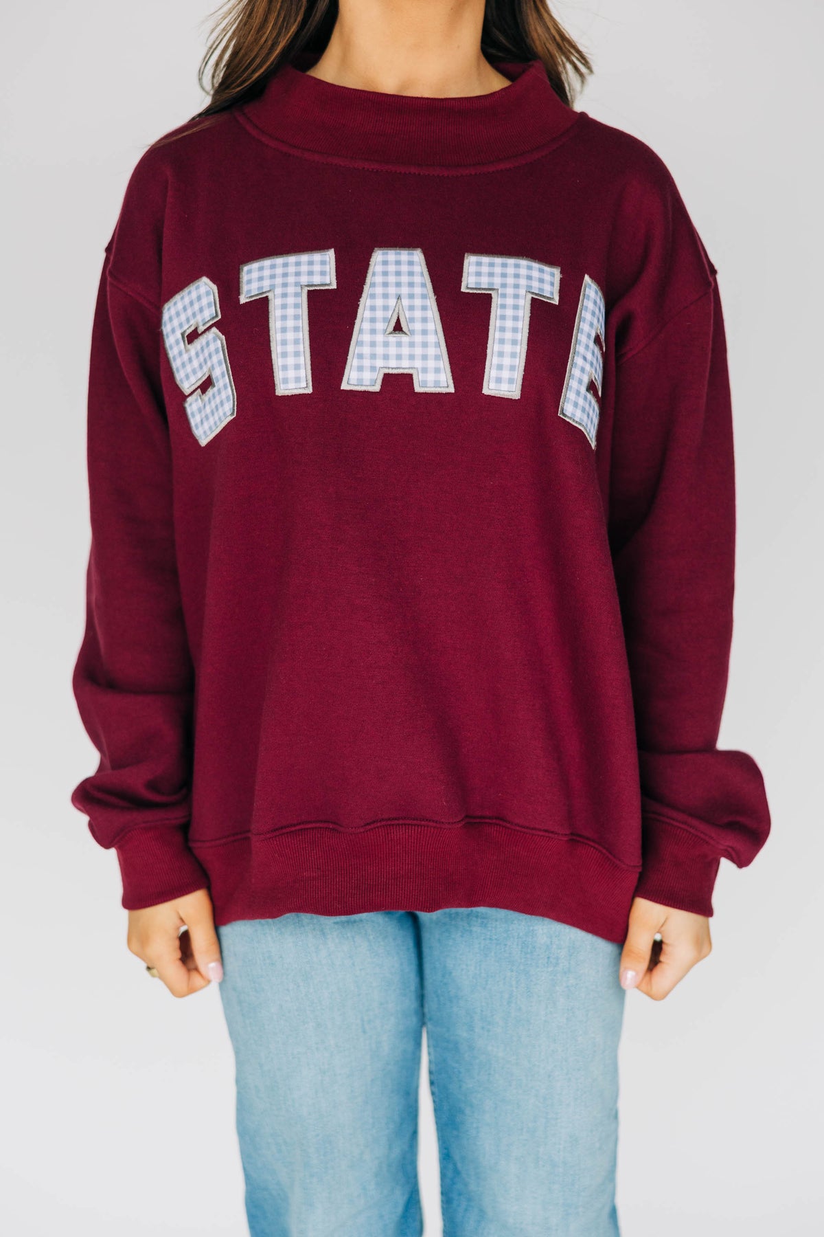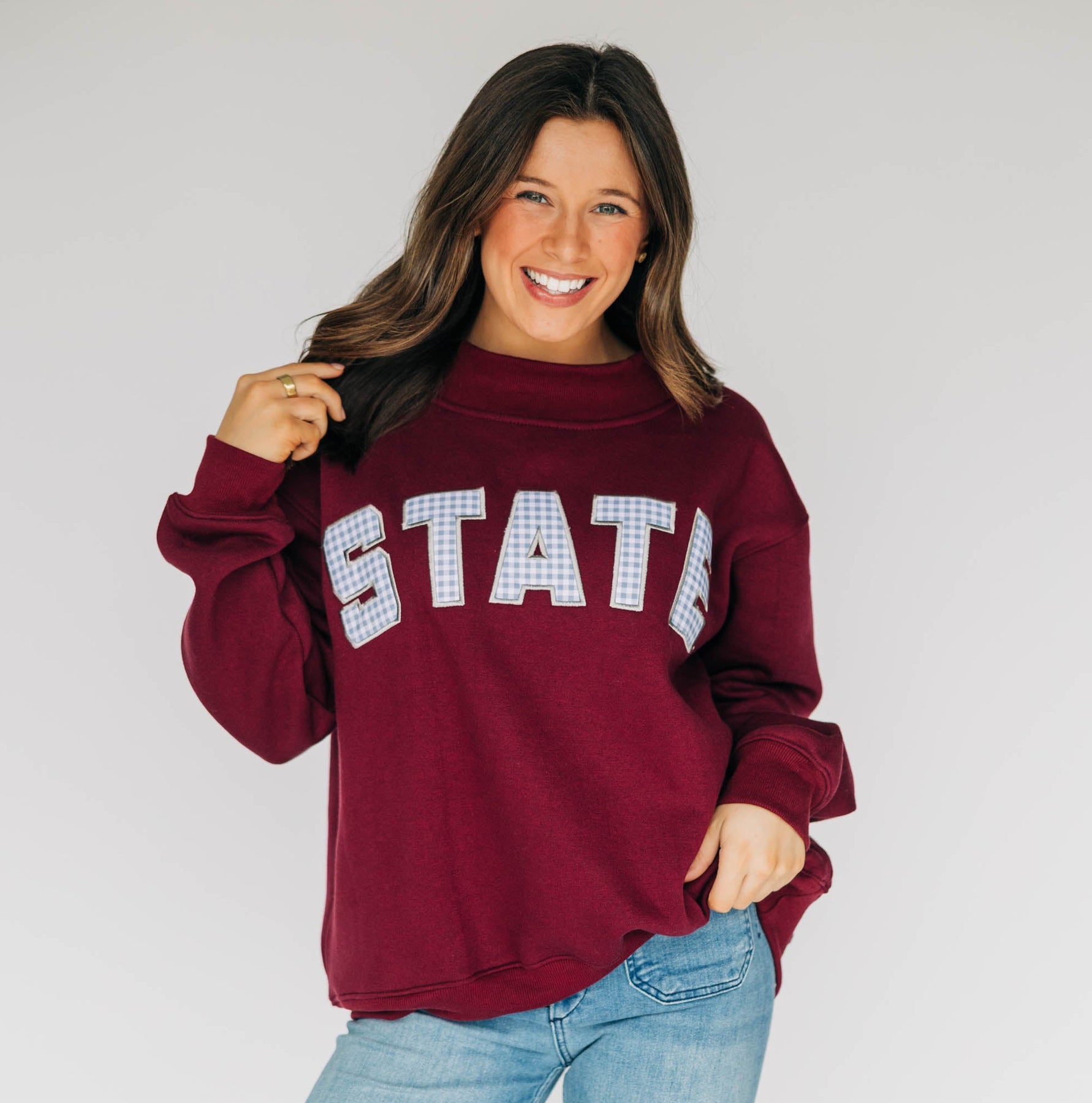 The Mallory Mockneck Mississippi State Gingham | Deep Maroon