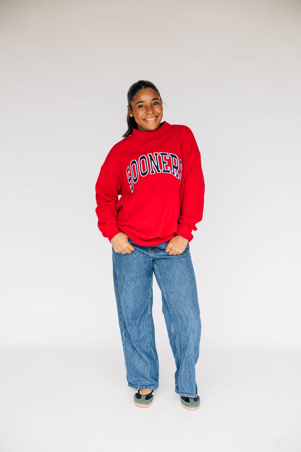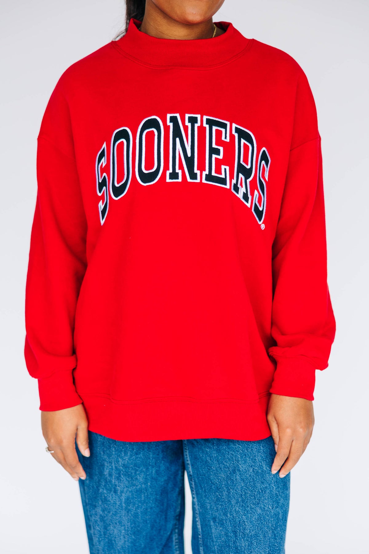 The Madi Classic Mockneck Sooners Applique | Crimson