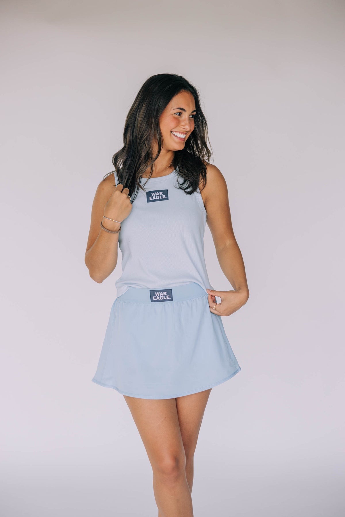 The Alli Tennis skirt might be our new S&G fave! With an elastic waistband and built in spandex shorts, this skirt fits true to size. It is breathable & not tight fitting. Includes a WAR EAGLE woven label on the front center of the waistband.