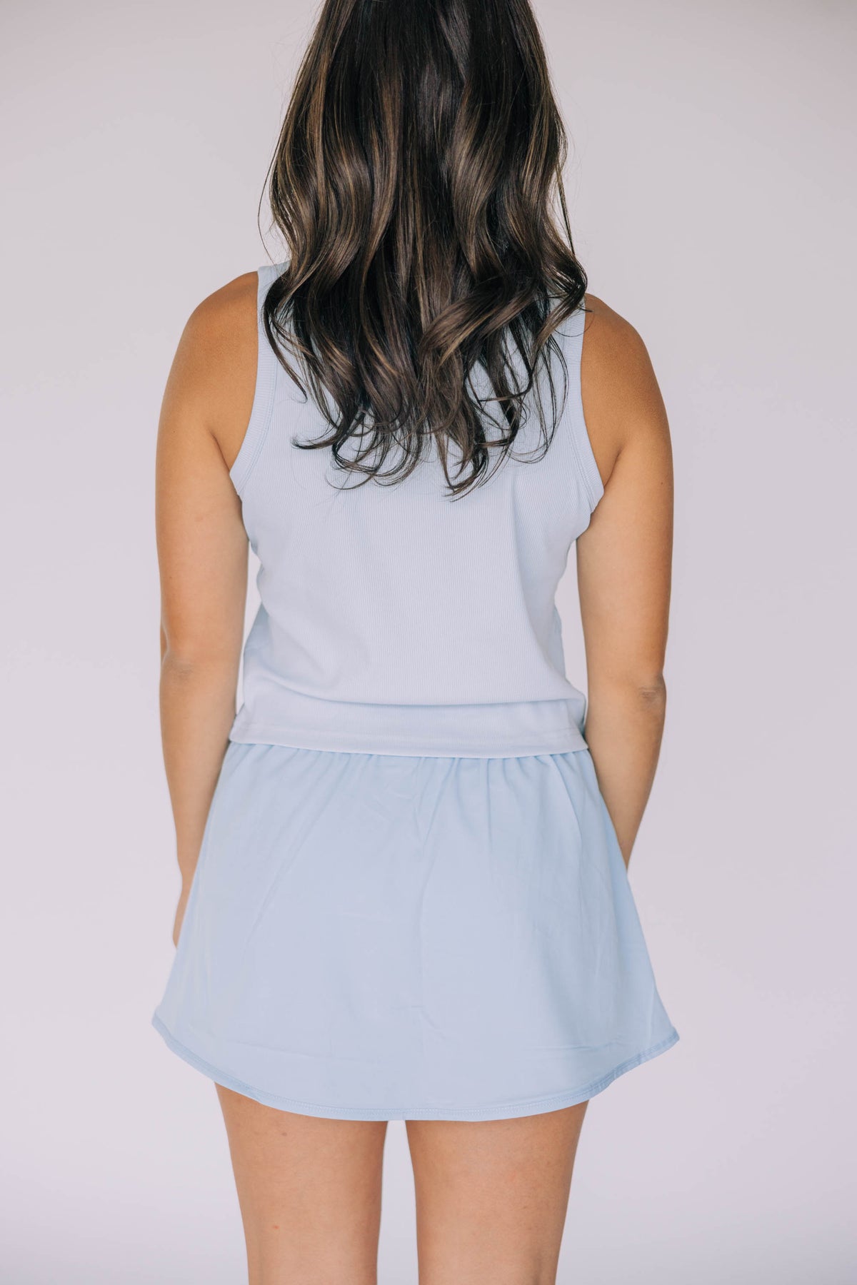 The Light Blue Liz Ribbed Tank  | War Eagle Woven Label