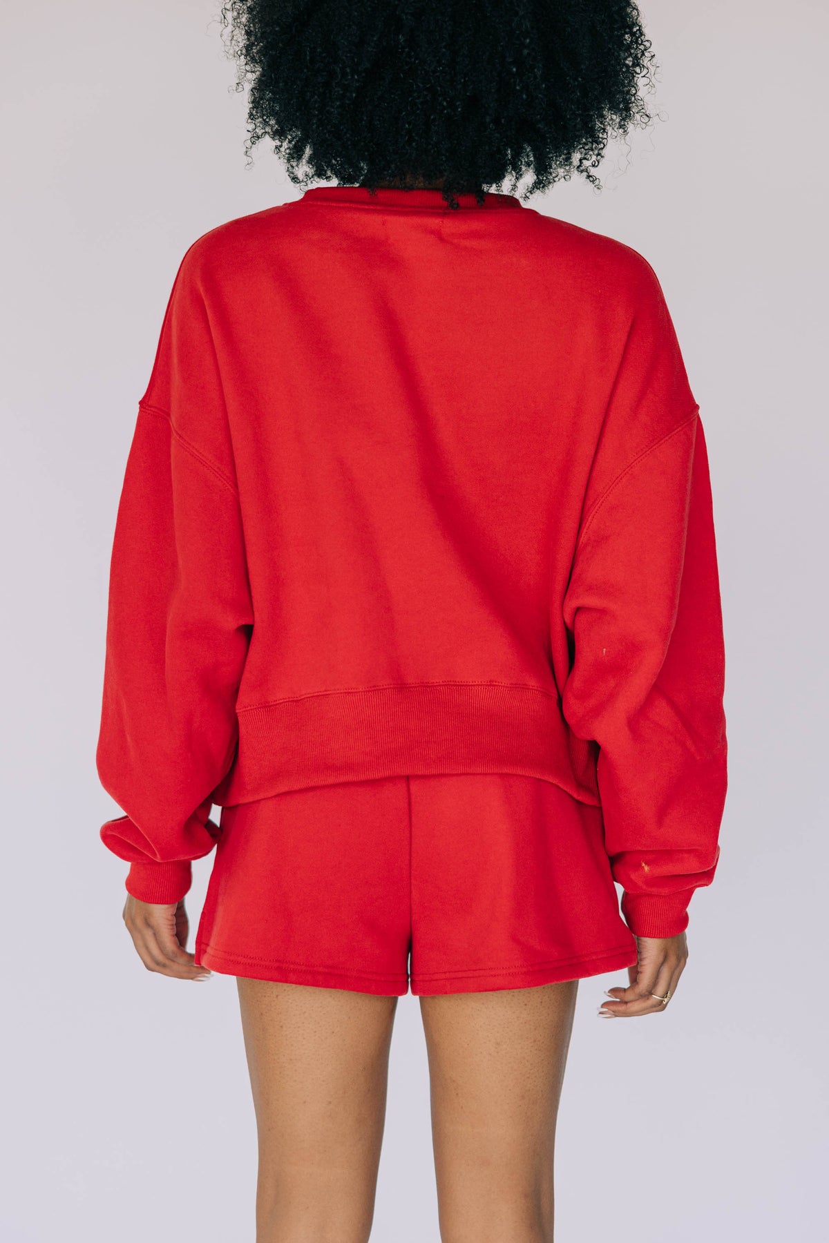 Meet the Becca shorts, the softest and most flattering midweight sweatshorts!! The red color is STUNNING! Shorts feature a cinched waistband &  fit true to size. The Becca shorts feature a woven label on the left corner.