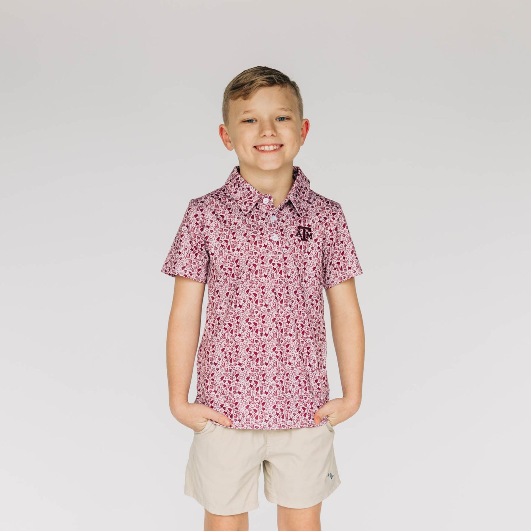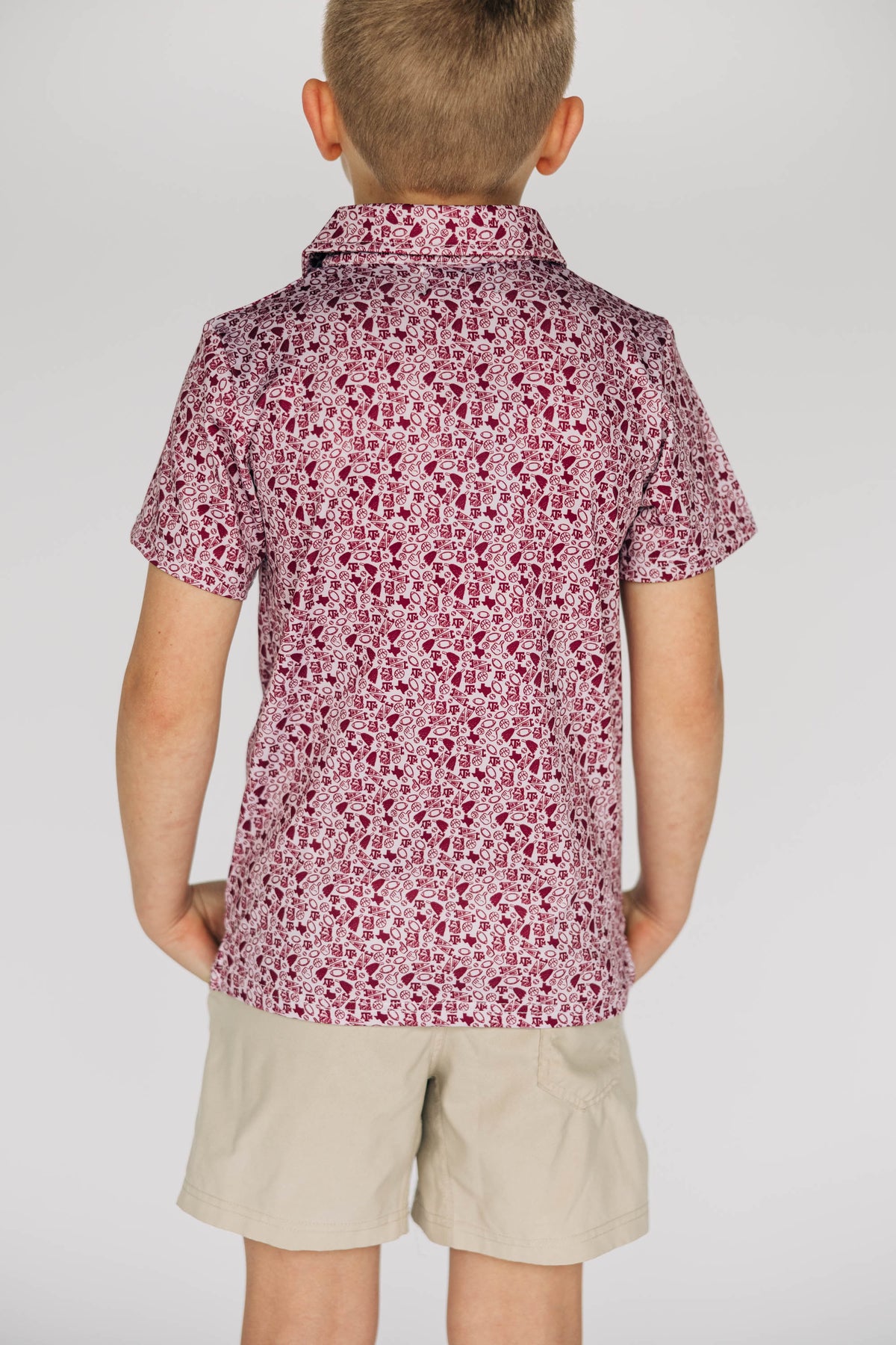 Each polo features a hand-illustrated pattern unique to your school, paired with an embroidered logo on the left chest for a classic, spirited touch. It’s sporty, polished, and easy to wear — the kind of shirt he’ll reach for every game day (and plenty of non–game days, too).