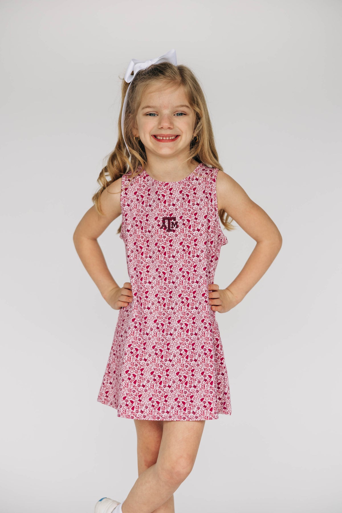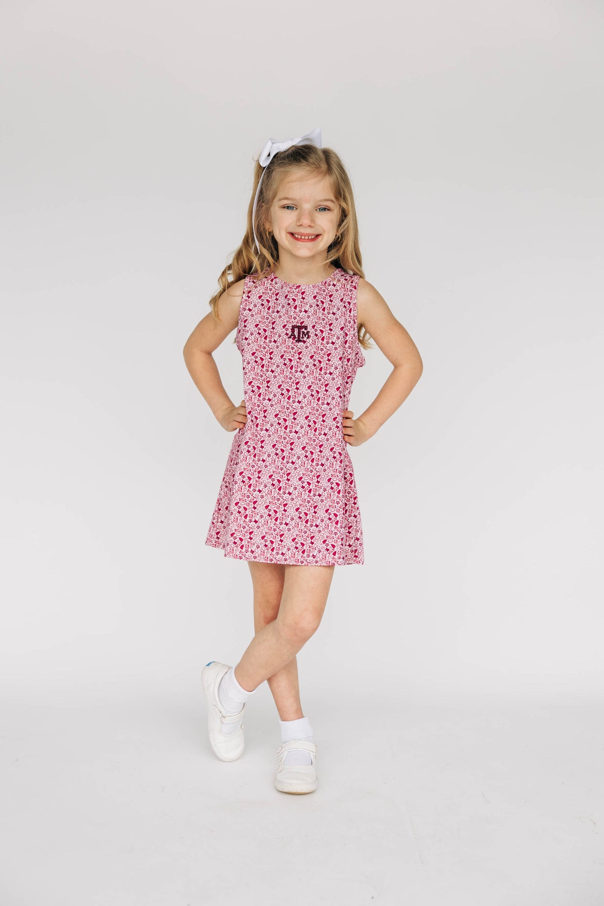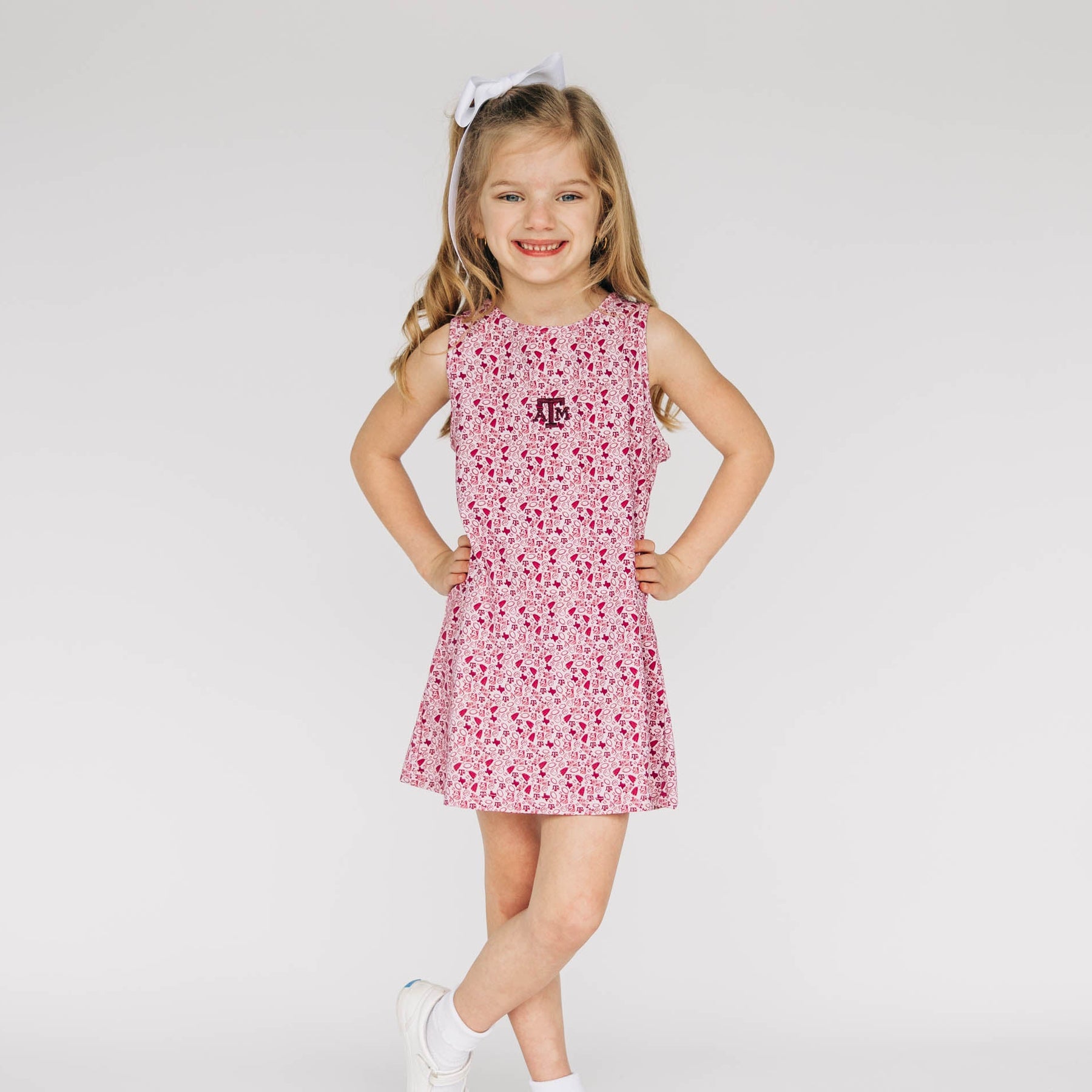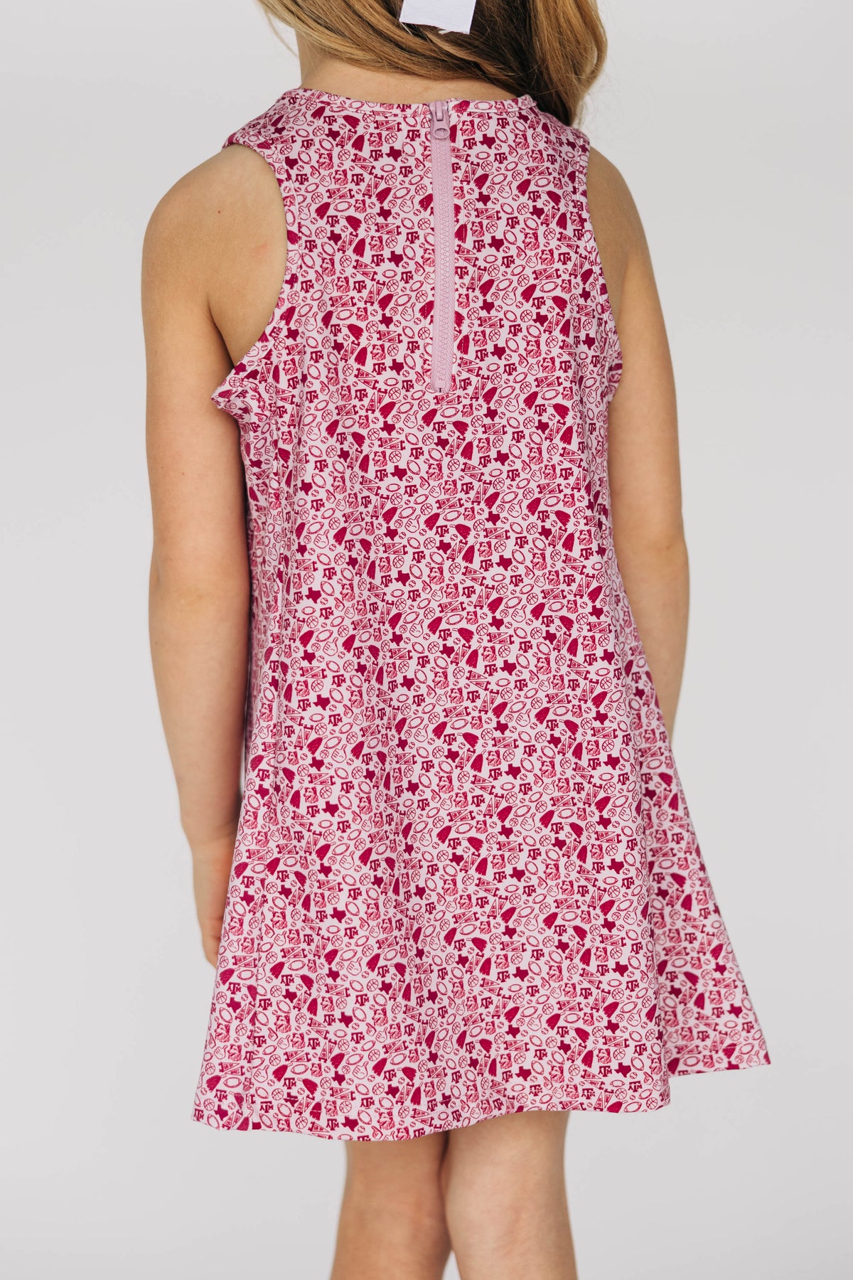 Meet your new game day uniform — cute, sporty, and made for real life. The Grace Pattern Dress is perfect for a morning pickleball match, running around with the kids, or cheering on your team. It features a high neckline, an A-line silhouette, and a sleeveless cut that keeps things breezy and flattering. Seaming along the sides adds subtle structure, while a zipper at the upper back makes it easy to slip on and off.