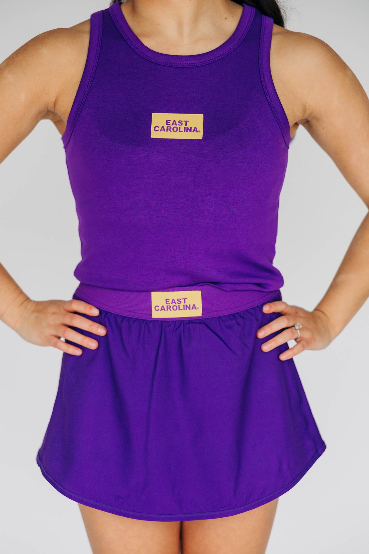 Made from our signature cheer-dress fabric blend, it has just the right amount of stretch and softness to keep you comfy all day long.