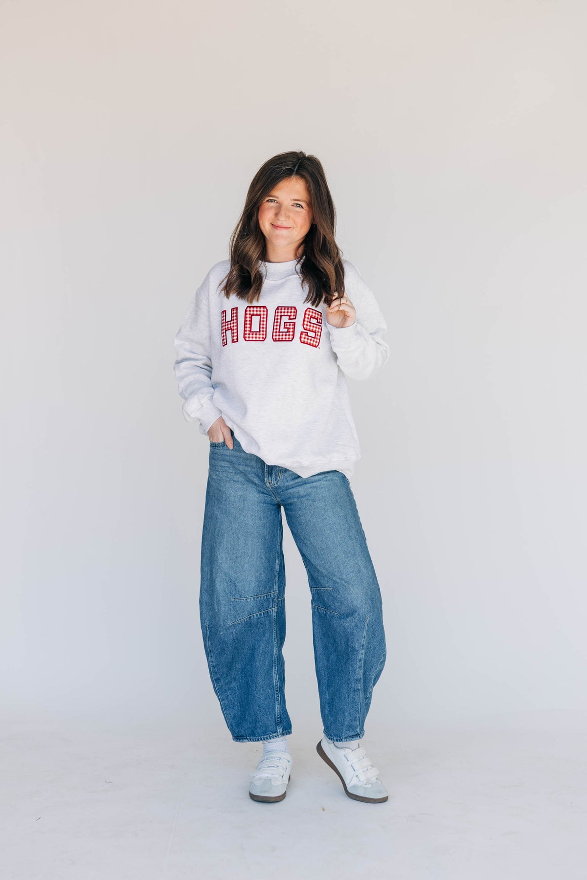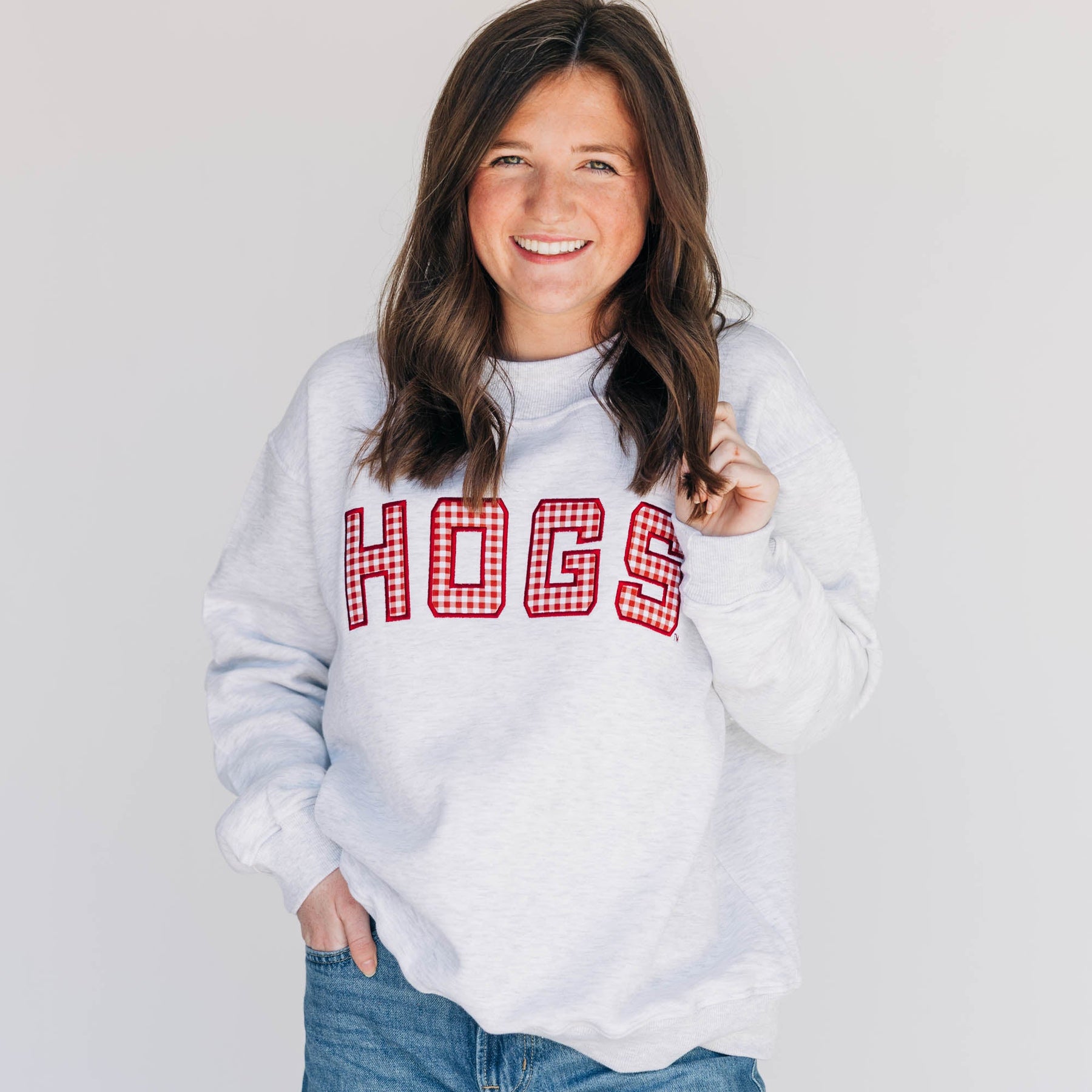 Say hello to your new favorite mockneck. The Mallory Gingham Mockneck features a high-quality appliqué arch with gingham fabric inside — the cutest way to rep your favorite school. It’s made from a thicker, midweight cotton-poly blend that feels soft, sturdy, and perfect for everyday wear.